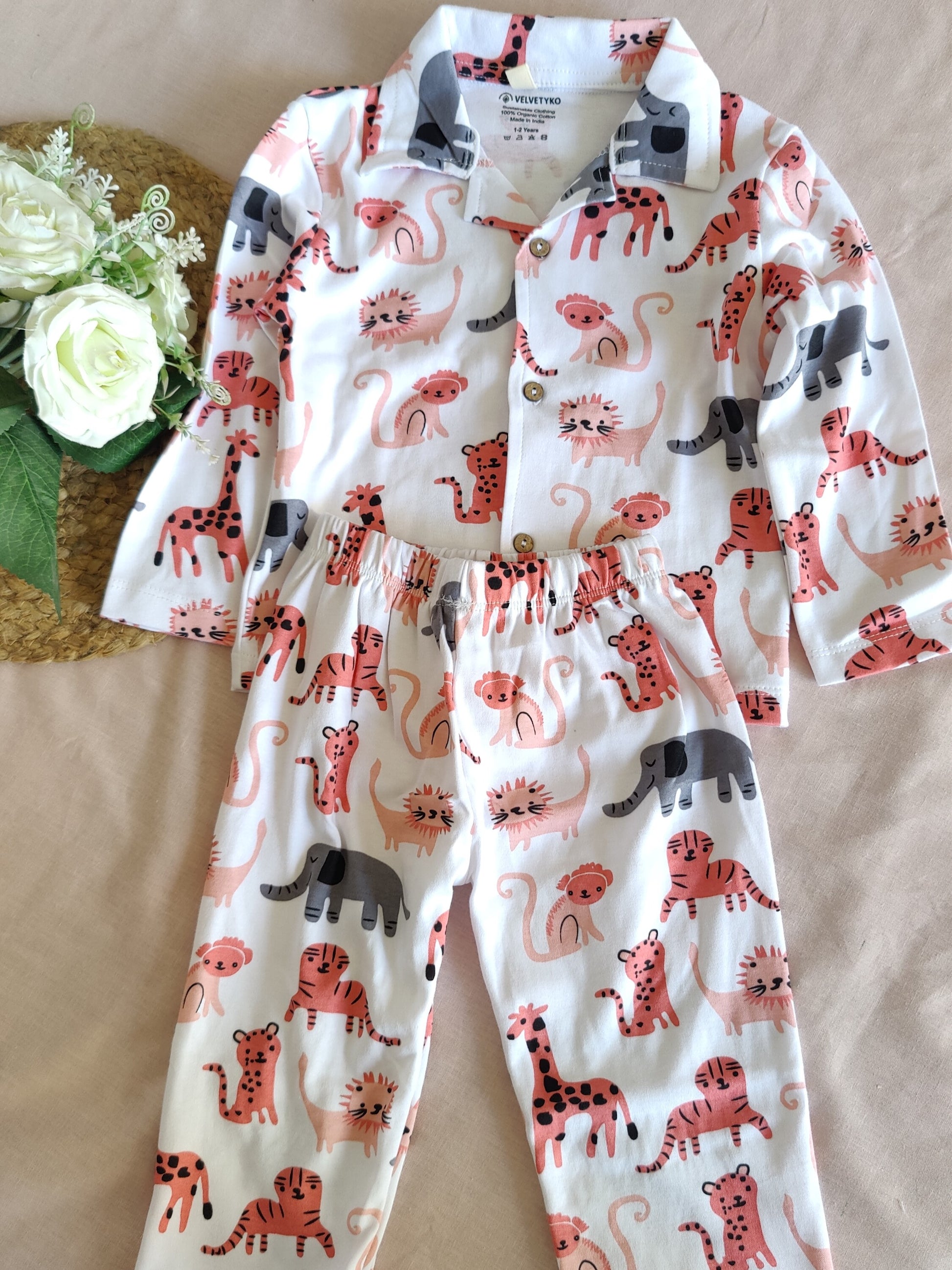 Let your little one lounge in style with our Velvetyko Safari Dreams Nightwear Set—a cozy, charming ensemble made for comfort and imagination.