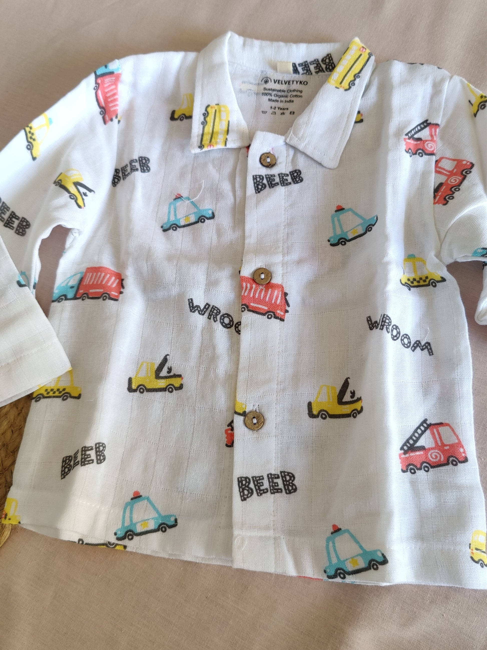 Velvetyko Soft Organic Cotton Vehicle Print Pajama Set.