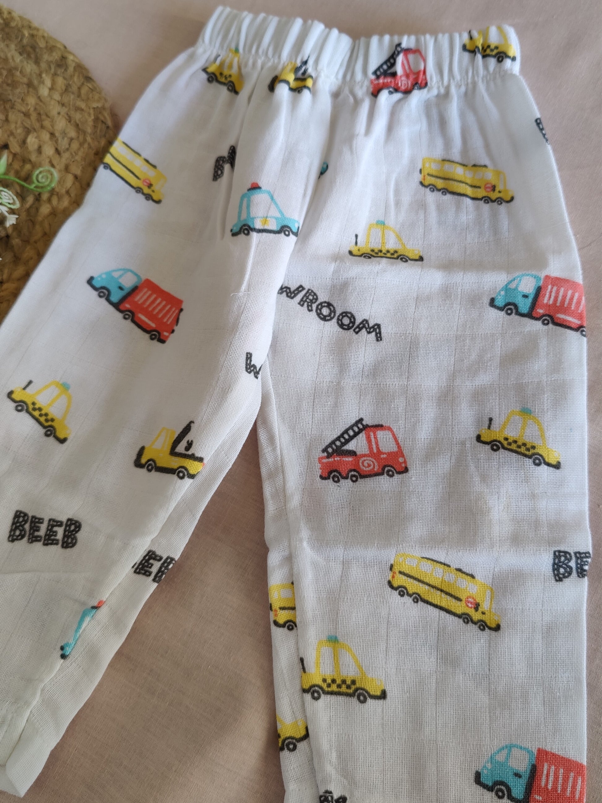 ✨ Playful Detailing – Cheerful car and truck prints with fun “beep” and “vroom” accents.