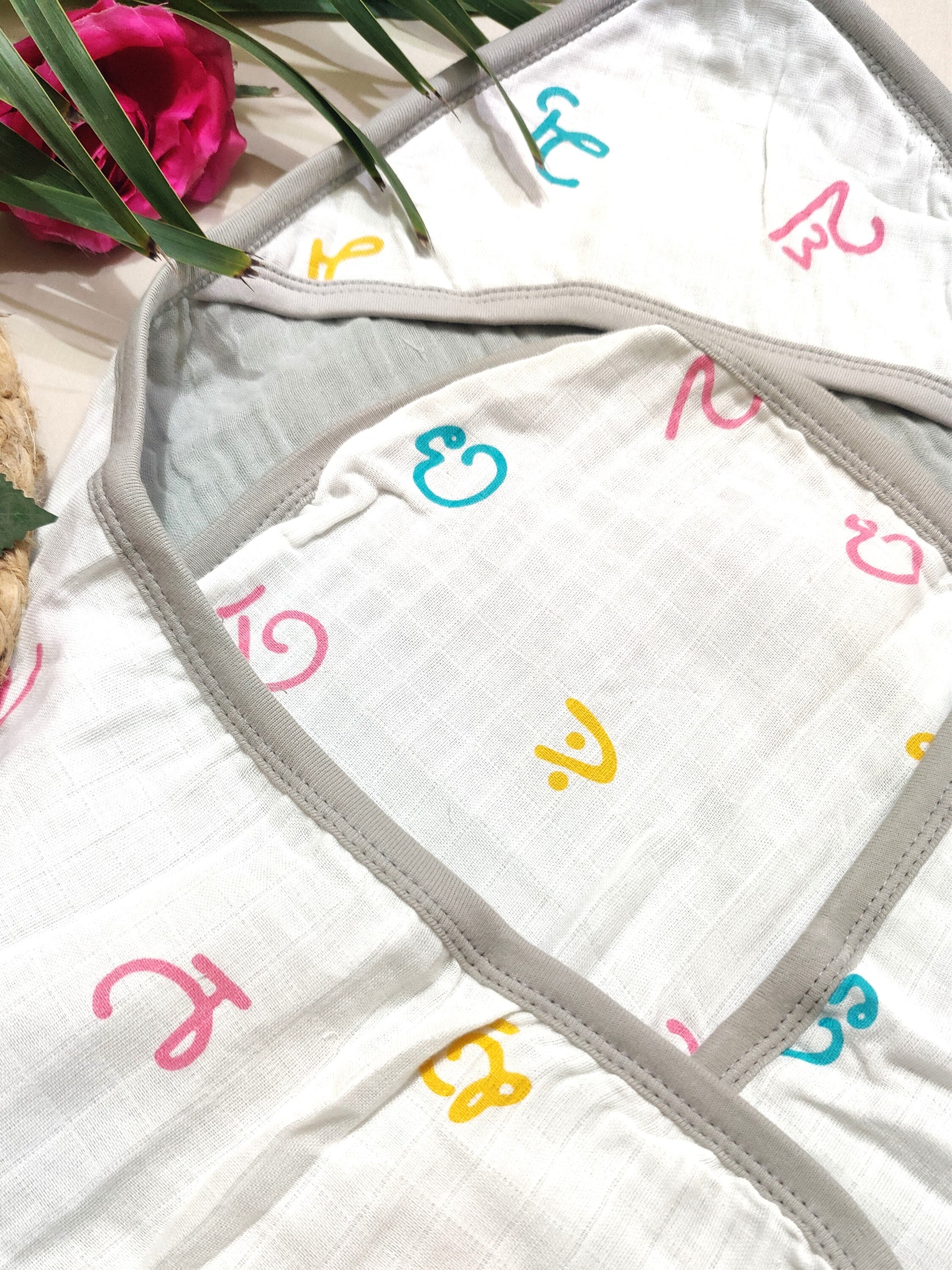 Soft Organic Muslin Baby Hooded Towel – Playful Motifs | Velvetyko